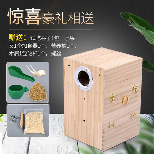 Tiger Skin Xuanfeng Small Sun Solid Wood Parrot Bird Nest Hanging Nest Parrot Nest Warm Vertical Pine Breeding Box Bird Nest